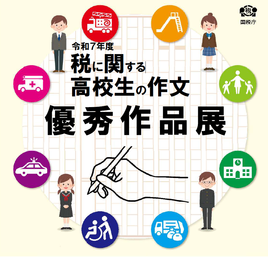 国税庁が募集した「税に関する高校生の作文」のうち、大阪府内の上位受賞作品を展示します。これは、次代を担う高校生の皆さんが、学校教育の中で学習したことや自分自身の経験・体験などを通して、税について考えたことを作文の形で発表したものです。