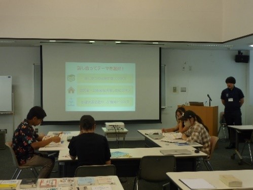 セミナー当日に初めて顔を合わせる人もいるため、アイスブレイクから開始。緊張がほぐれたところで、ビジネスプランのテーマについて検討しました。今回は講師が用意した3つのテーマ案の中から、「水都大阪を活かした観光ビジネス」を考案することにしました。