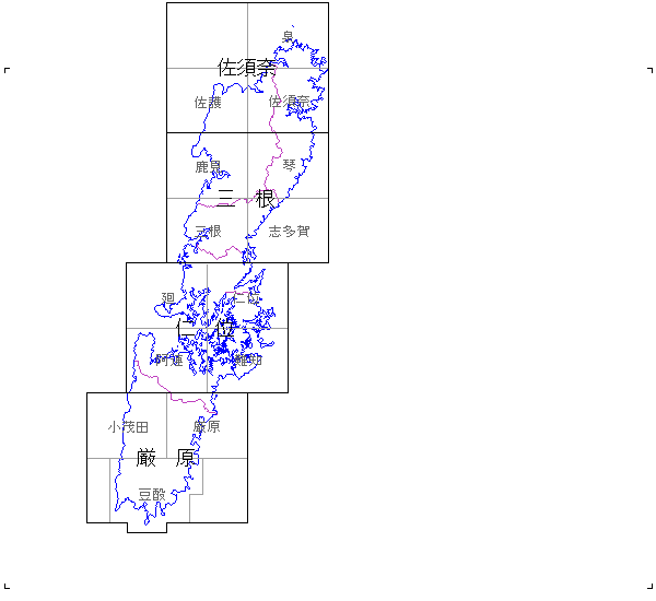 地名をクリックすると、所蔵版が表示されます。(黒い大きな文字が5万分の1地形図、灰色の小さな文字の地名が2万5千分の1地形図)