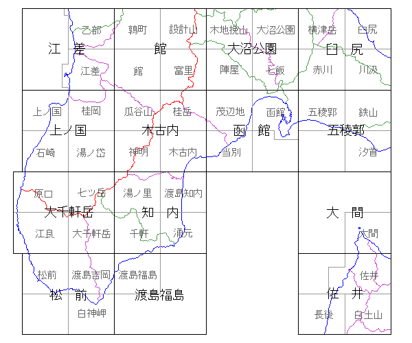 臼尻 大沼公園 館 江差 佐井 渡島福島 松前 大間 知内 大千軒岳 五稜郭 函館 木古内 上ノ国 乙部 鶉町 設計山 木地挽山 大沼公園 横津岳 臼尻 江差 館 富里 陣屋 七飯 赤川 川汲 上ノ国 桂岡 瓜谷山 桂岳 茂辺地 函館 五稜郭 鉄山 石崎 湯ノ岱 神明 木古内 当別 汐首 原口 七ツ岳 湯ノ里 渡島知内 江良 大千軒岳 千軒 涌元 大間 松前 渡島吉岡 渡島福島 佐井 白神岬 長後 白土山
