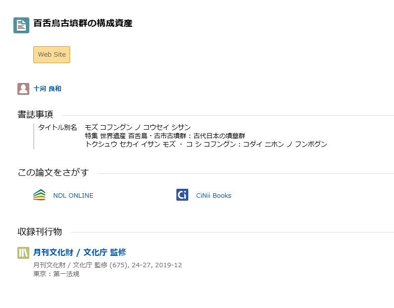 CiNii Researchで「百舌鳥・古市古墳群」に関する雑誌記事を探してみましょう。