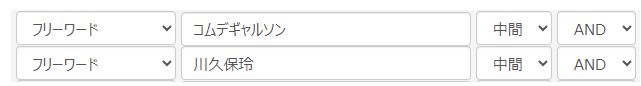 例:「フリーワード」→「川久保玲 コムデギャルソン」で検索