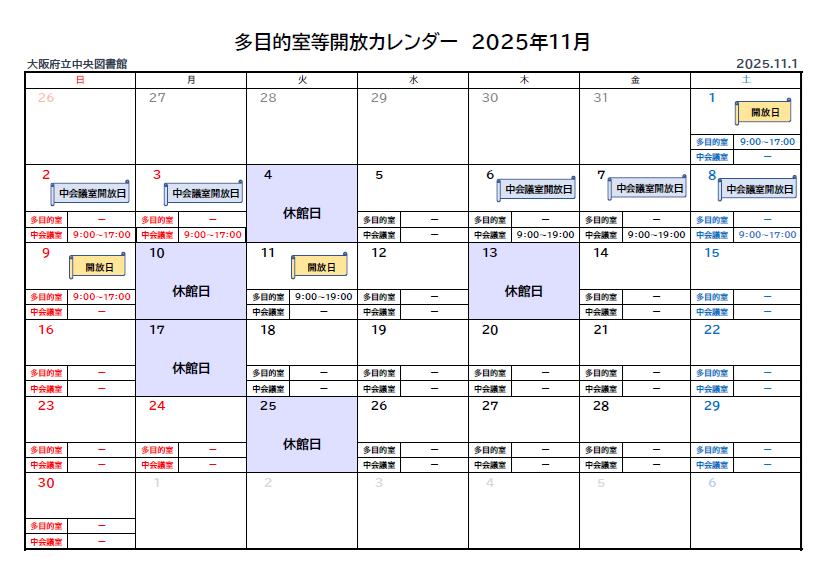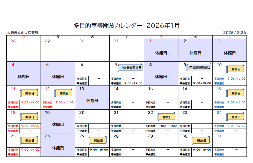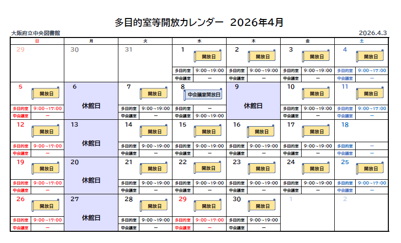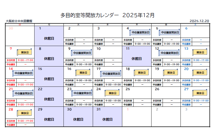※イベント開催等により利用できない日・時間帯があります。スケジュールの変更が入り次第更新しますので、随時ご確認ください。
