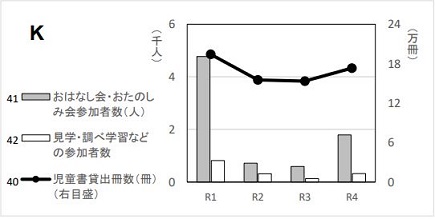 | 41 | おはなし会・おたのしみ会等の参加者数 | 4,770 | 717 | 592 | 1,794 | K | |